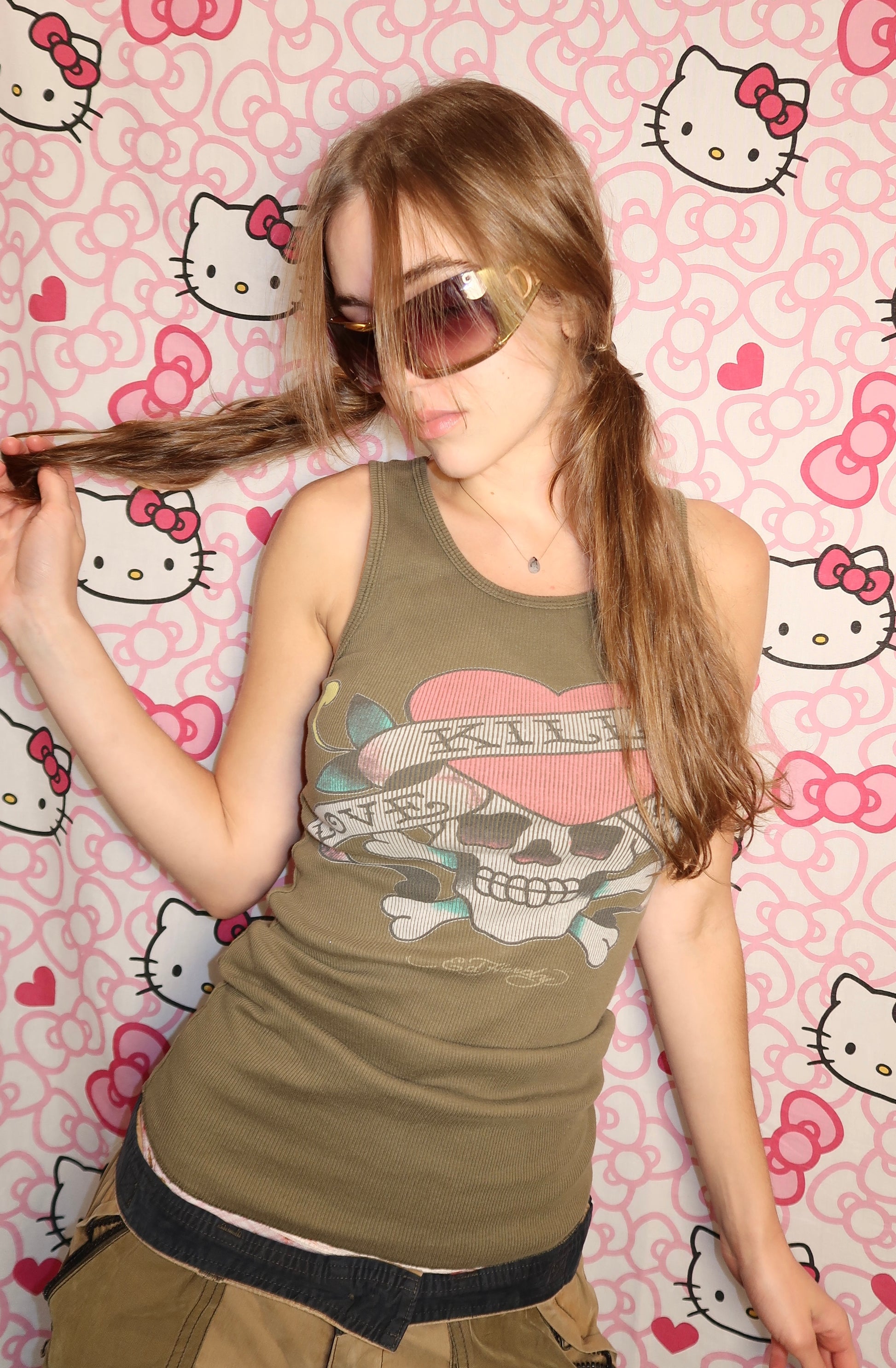Vintage Ed Hardy tank in a stretchy ribbed cotton.